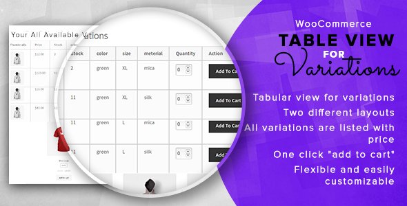Woocommerce Variations to Table – Grid will turn product’s page default variations select-option menus to user friendly table – grid display. It features a self-explanatory with plenty of options admin settings panel, great documentation and support and per product options.